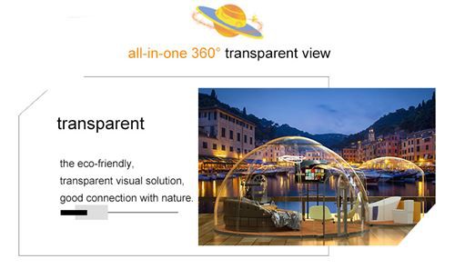 Esta casa de Cúpula de Luxo é totalmente diferente da tradicional casa de bolhas. O policarbonato de saída é uma espécie de material à prova de balas, difícil de quebrar do lado de fora. Também tem função de impermeável, à prova de fogo, anti-UV, isolamento acústico, alta transparência, o que o torna excelente de todas as outras tendas de cúpula.